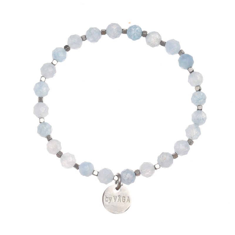 Ett elastiskt armband med 6 mm slipade halvädelstenar, varvat med ståldetaljer. Ett stilsäkert tillskott till din smyckessamling.
