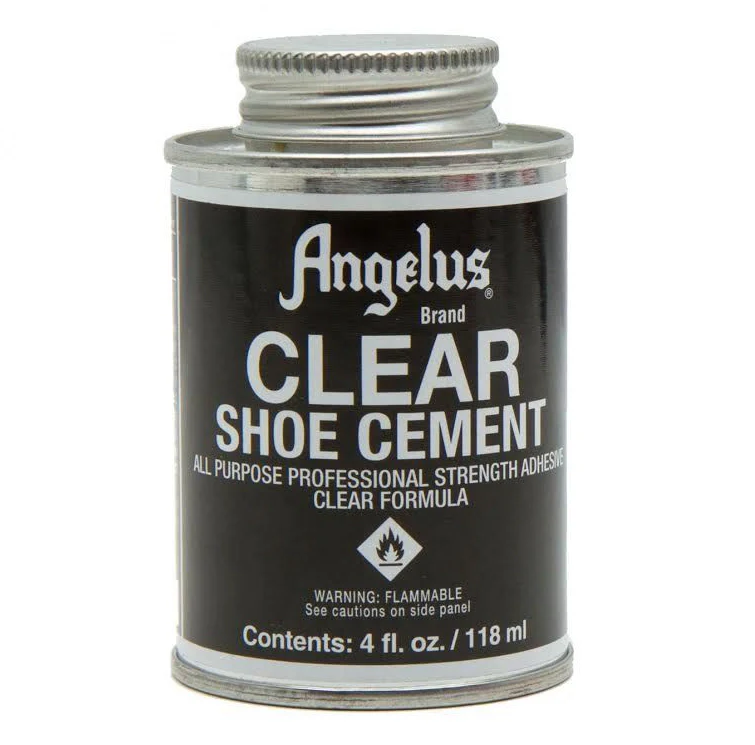 OBS! Angelus Clear Shoe Cement är lösningsmedelsbaserat och innehåller aceton.