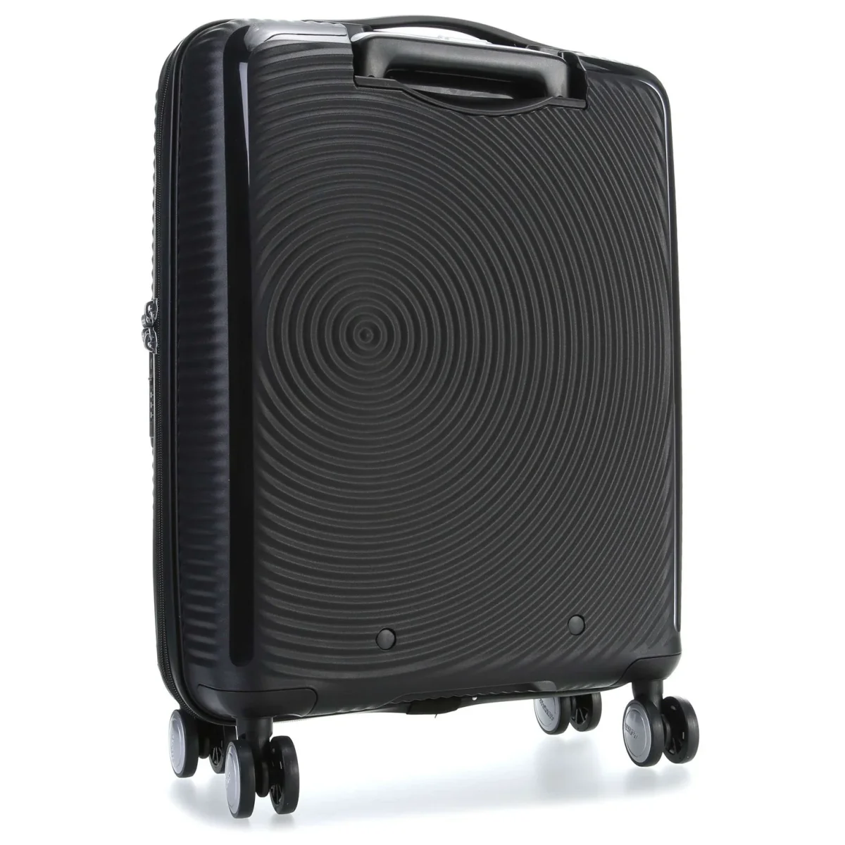 Med sitt ikoniska cirkelformade mönster inspirerat av en vinylskiva är Soundbox från American Tourister en resväska som drar blickarna till sig – både på flygplatsen och i stadens folkvimmel. Den matta och glansiga finishen skapar en modern känsla, samtidigt som funktionalitet står i centrum: expanderbart utrymme, lätt vikt och ett säkert TSA-lås gör den till ett smart val för både weekendresor och affärsresor.