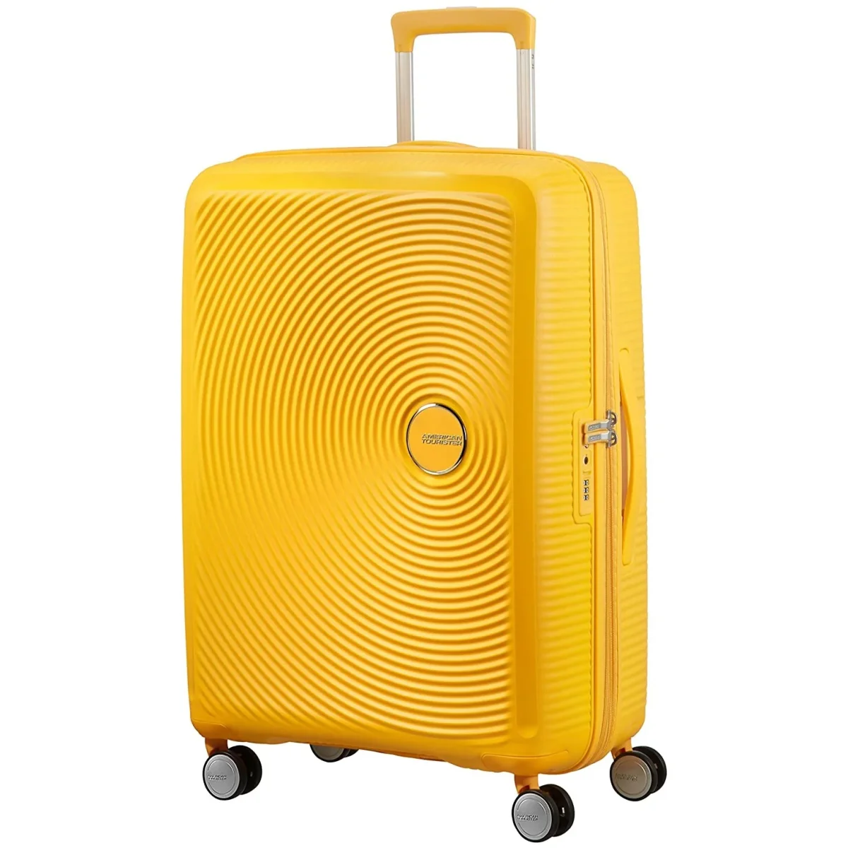 Den är säker, lätt och slitstark, och det lekfulla, cirkelformade mönstret med kontrasterande matta och glansiga ytor väcker garanterat uppmärksamhet vart du än reser. Med sin expanderingsfunktion för mera plats vid behov, sitt fasta TSA-lås, de 4 lättrullade hjulen och de praktiska invändiga förvaringslösningarna är den här väskan ett utmärkt val!