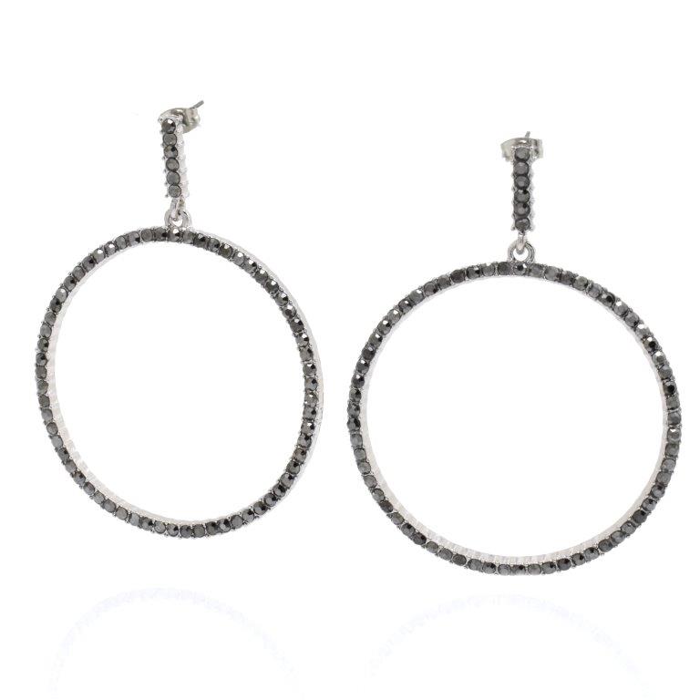 Dessa örhängen är tillverkade i pläterad koppar och smyckade med strass stenar runt hela ringen. Den generösa diametern på 5 cm ger ett markerat men luftigt uttryck som fångar ljuset vid rörelse. Örhängena är nätta, vilket gör dem lätta att bära trots storleken. Ett par som lyfter looken och passar lika bra när du vill göra ett statement som till enklare outfits. Stick i 316 stål.