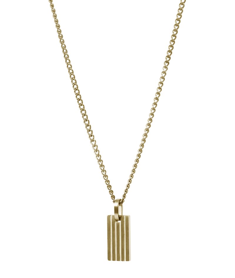 Halsband av en 2 mm bred pansarlänk och ett hänge med matt yta och polerade sidor.