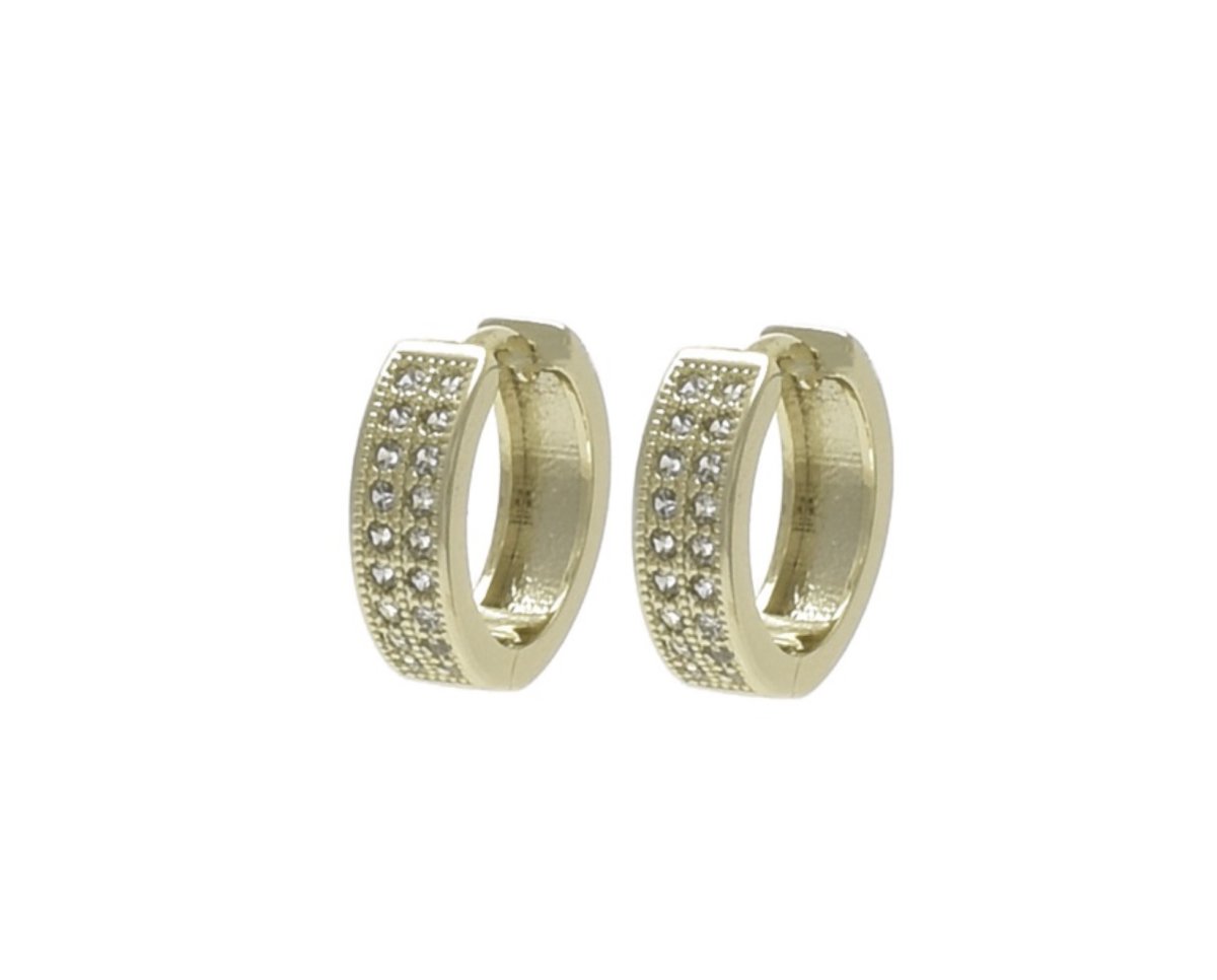 Hoops i pläterad koppar med äkta guld och stift i kirurgstål. De klara stenarna ger ett fint skimmer och den nätta 15 mm-storleken gör dem lätta att bära varje dag.