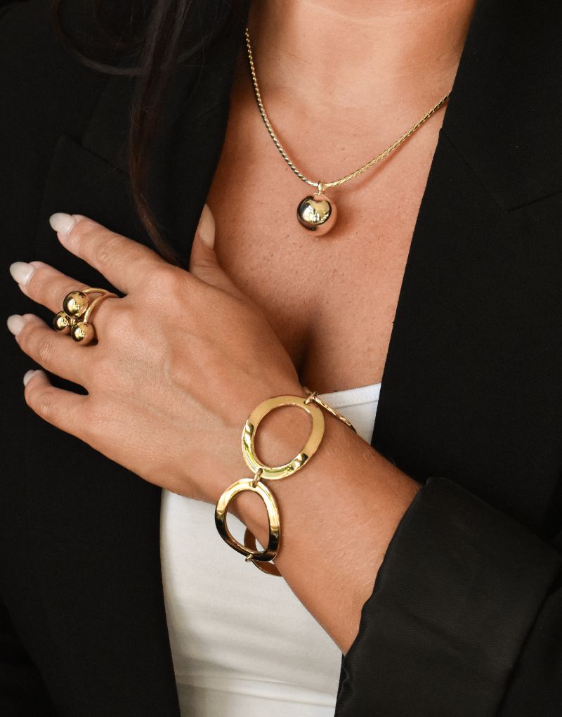 Beau halsband har ett modernt uttryck där den stora blanka kulan möter en mer dämpad twistad kedja. Det kan dessutom enkelt justeras så att det kan användas som både kort och långt halsband. Det passar på alla tillställningar, både till vardags och till fest. Välj i resten av serien för att matcha med ring, armband och örhängen.