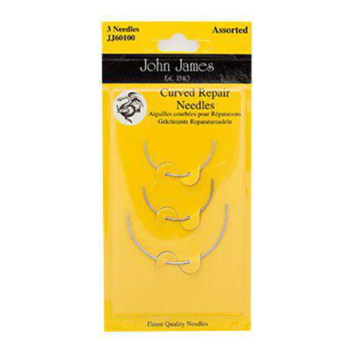 Böjd hantverksnål i olika storlekar för arbete i läder och andra material. Utmärkt de gånger du inte kommer åt med en rak nål av olika anledningar.