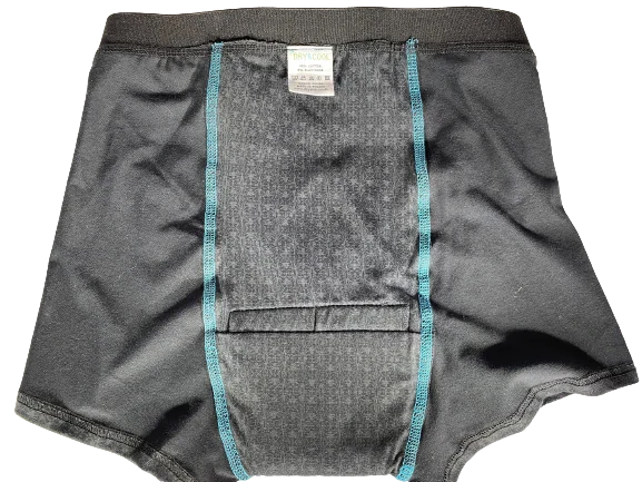 Underbyxorna är utformade i färger och designs som gör våta fläckar minst möjligt synliga.