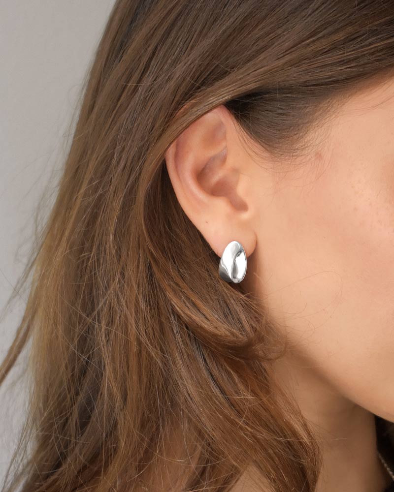 Ett par silverörhängen på stift med en blankpolerad organisk formgivning. Vattnet och dess kraft har många skepnader och humör. Det lugna djupa havet, den porlande bäcken eller den stormiga oceanen. Vårt vatten ger liv åt jorden och allt levande.