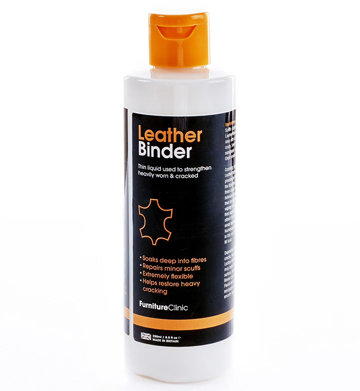 Furniture Clinic Leather Binder är en läderförstärkare som används vid restaurering och infärgning av läder och skinn. Leather Binder förstärker slitet och krackelerat läder och skinn och fyller små repor och märken. Den tunna vätskan sugs in i läderfibrerna och binder dem samman, vilket leder till en mycket starkare läderstruktur.Den starkare strukturen förbättrar slitstyrkan och gör lädret mer flexibelt och tänjbart, vilket ger restaureringen av lädret ett betydligt bättre slutresultat. Med Leather Binder får slitet och skört läder en större hållbarhet och längre livslängd.