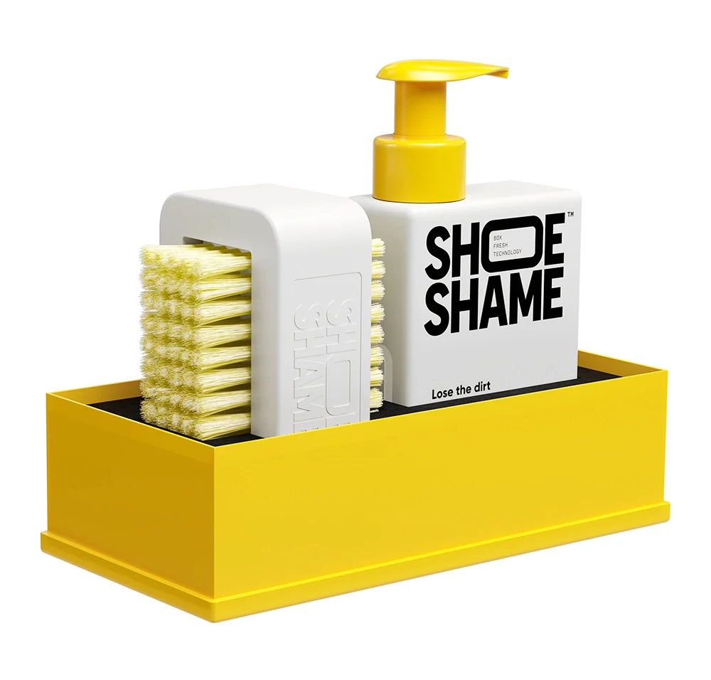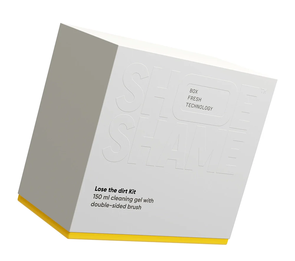 Lose The Dirt Kit från Shoe Shame är ett allt-i-ett rengöringskit för sneakers. Innehåller Lose the dirt rengöringsgel och Brush it off, en praktisk dubbelsidig rengöringsborste. Dessutom består förpackningen av en botten som kan användas som vattenskål under rengöringen. Ett “must-have-kit” för alla sneakersälskare.