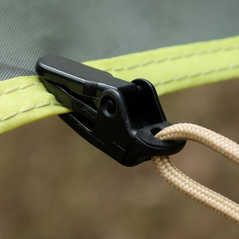 Ett set med 10 robusta tältklämmor som ger extra fästpunkter och stabilitet till tält, presenningar och vindskydd. De är små och lätta men har en stark konstruktion med tandad gripyta som håller fast även i tuffa förhållanden. Perfekta att använda tillsammans med rep eller paracord för att säkra utrustning.