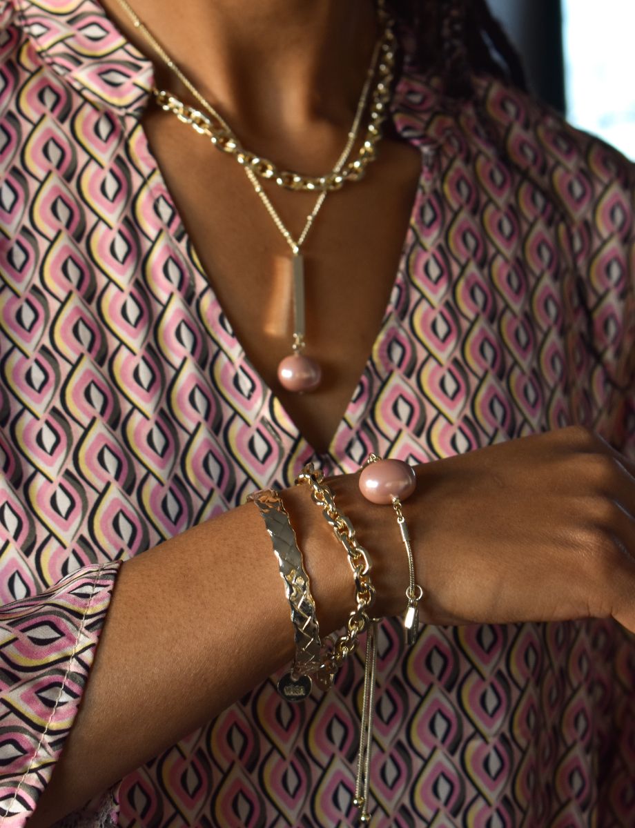 ADILA ARMBAND RÖKFÄRGAD/VITGULD