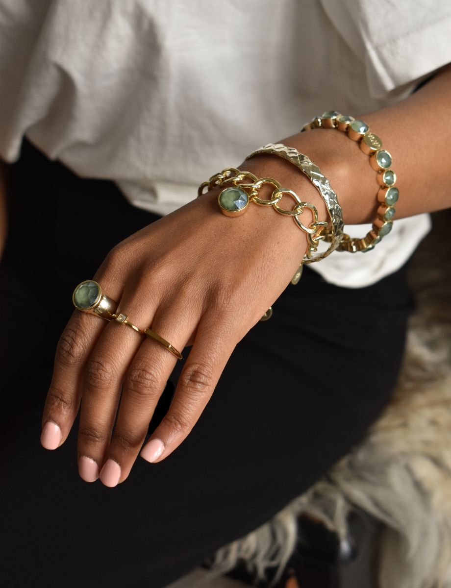 Tana är en tunn bangle som är enkel att forma efter handen. Mixa gärna med ett kedjearmband från by VÅGA.